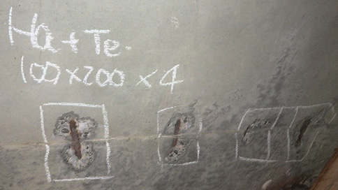 下面のコンクリートのひび割れ、剥離、内部鉄筋の腐食などが確認されており、抜本的な対策として、