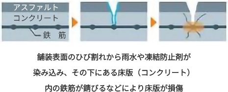 抜本的な対策として、耐久性の高いコンクリート床版に取り替えるものです。